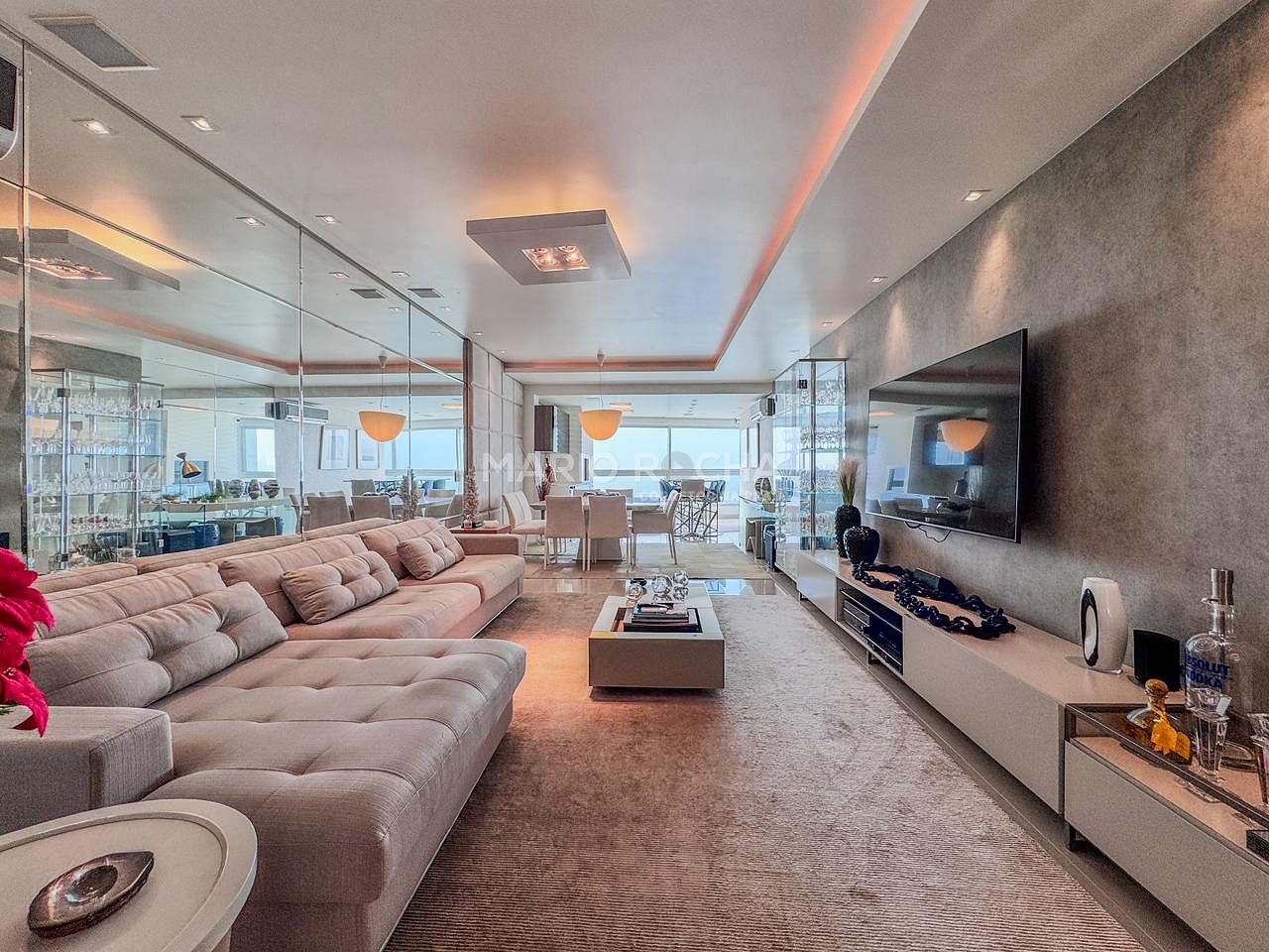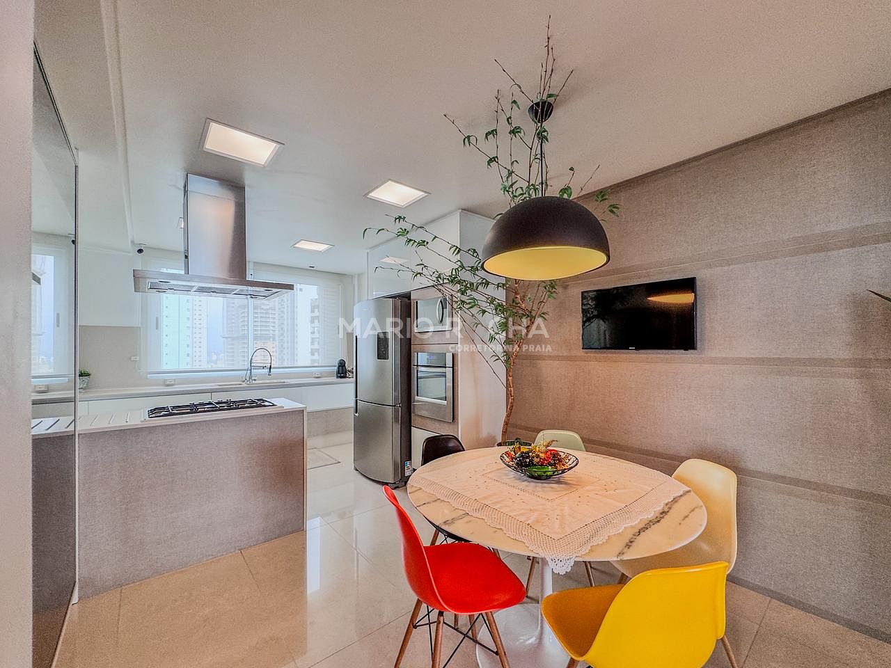 Totalmente mobiliado, o imóvel apresenta ambientes elegantes, bem distribuídos e prontos para morar, combinando conforto, funcionalidade e sofisticação em cada detalhe. A área social é generosa e integrada, ideal para receber com estilo sempre acompanhado pelo cenário privilegiado do litoral.