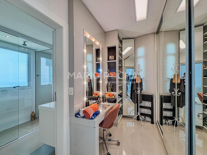 Vista definitiva, alto padrão e localização privilegiada definem este apartamento frente mar no Barramares, empreendimento construído pela renomada Cechinel, em Balneário Camboriú.