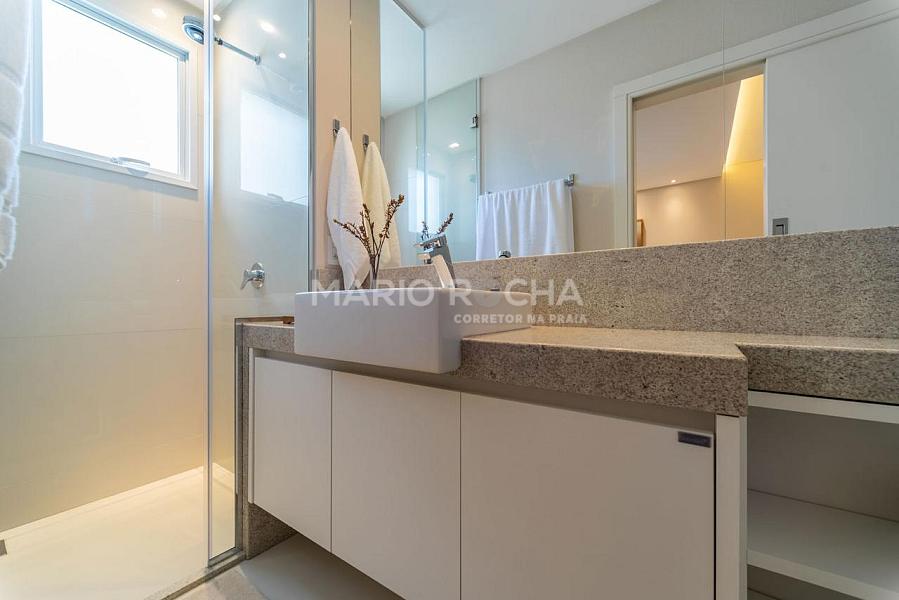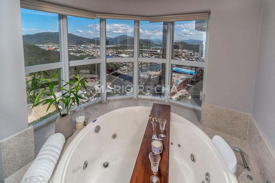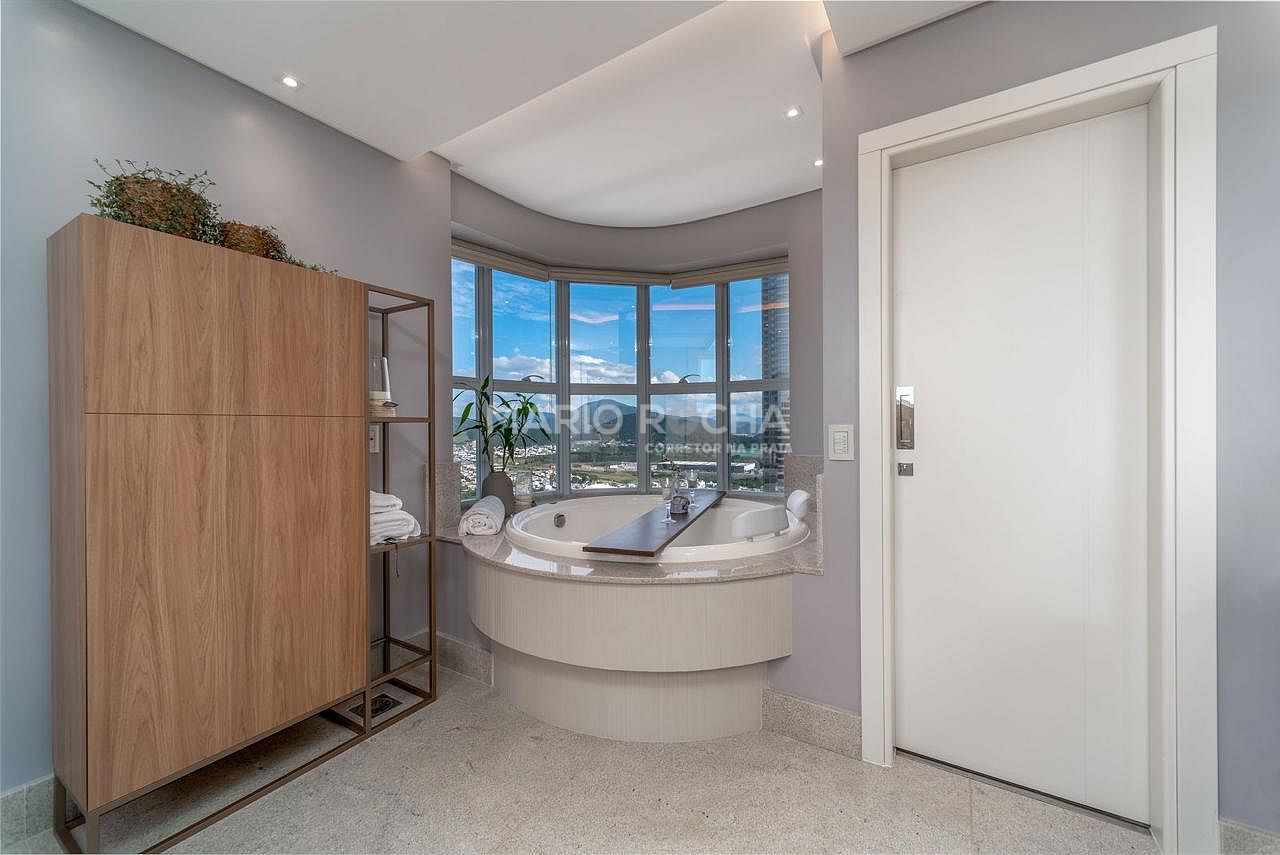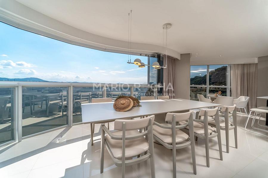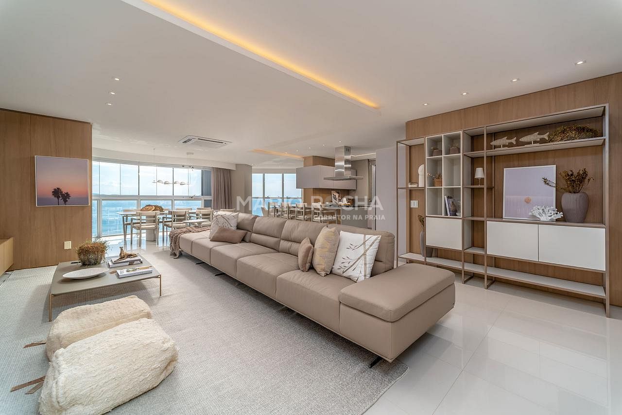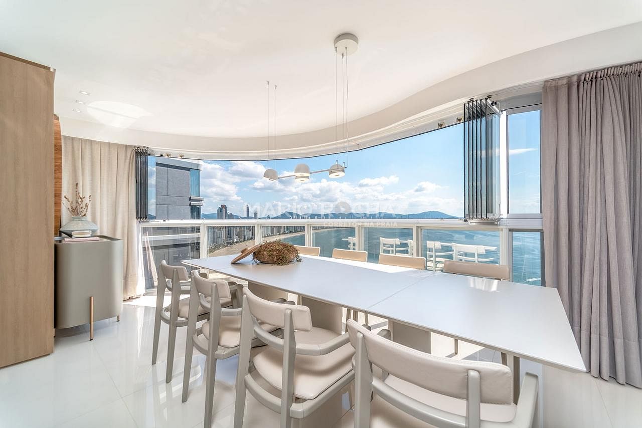 Com 237m² de área privativa, este apartamento se destaca por estar em andar elevado, proporcionando uma vista ainda mais ampla e impactante do mar, além de uma atmosfera de exclusividade e tranquilidade. A abundante incidência de luz natural valoriza cada ambiente e reforça a sensação de amplitude e bem-estar ao longo de todo o dia.