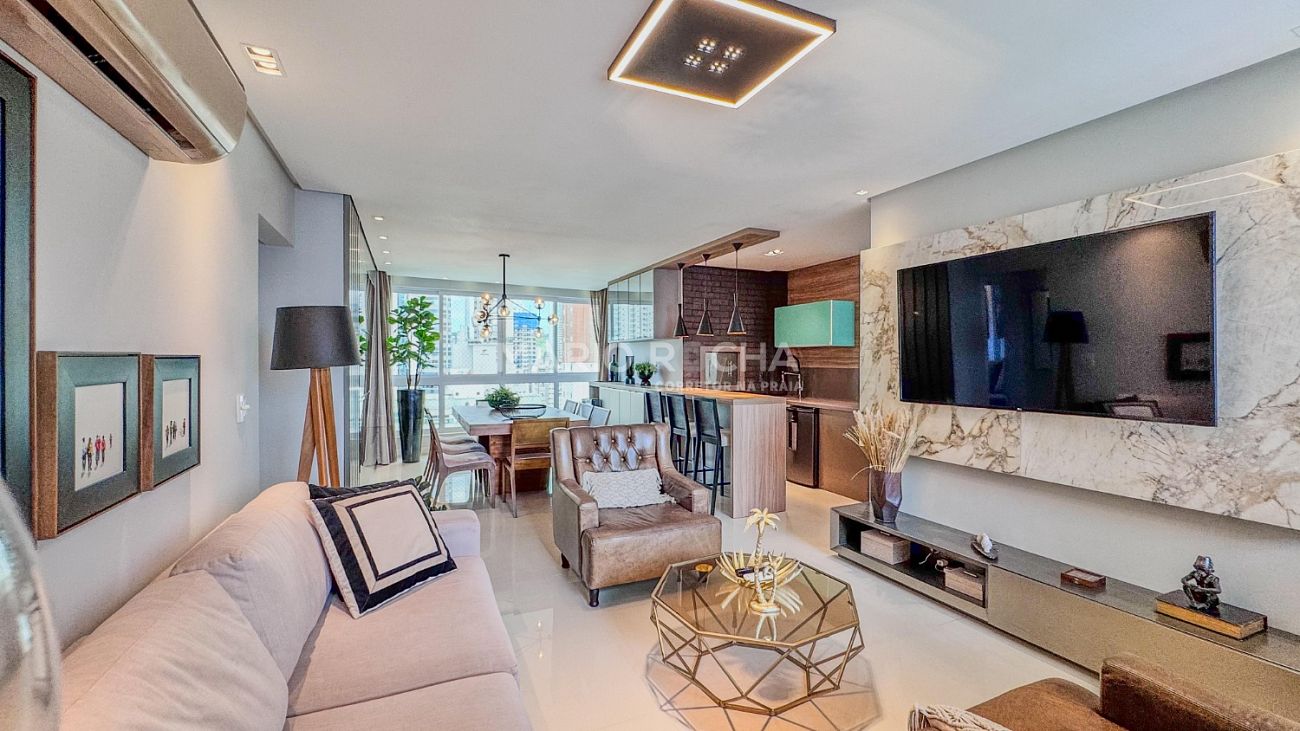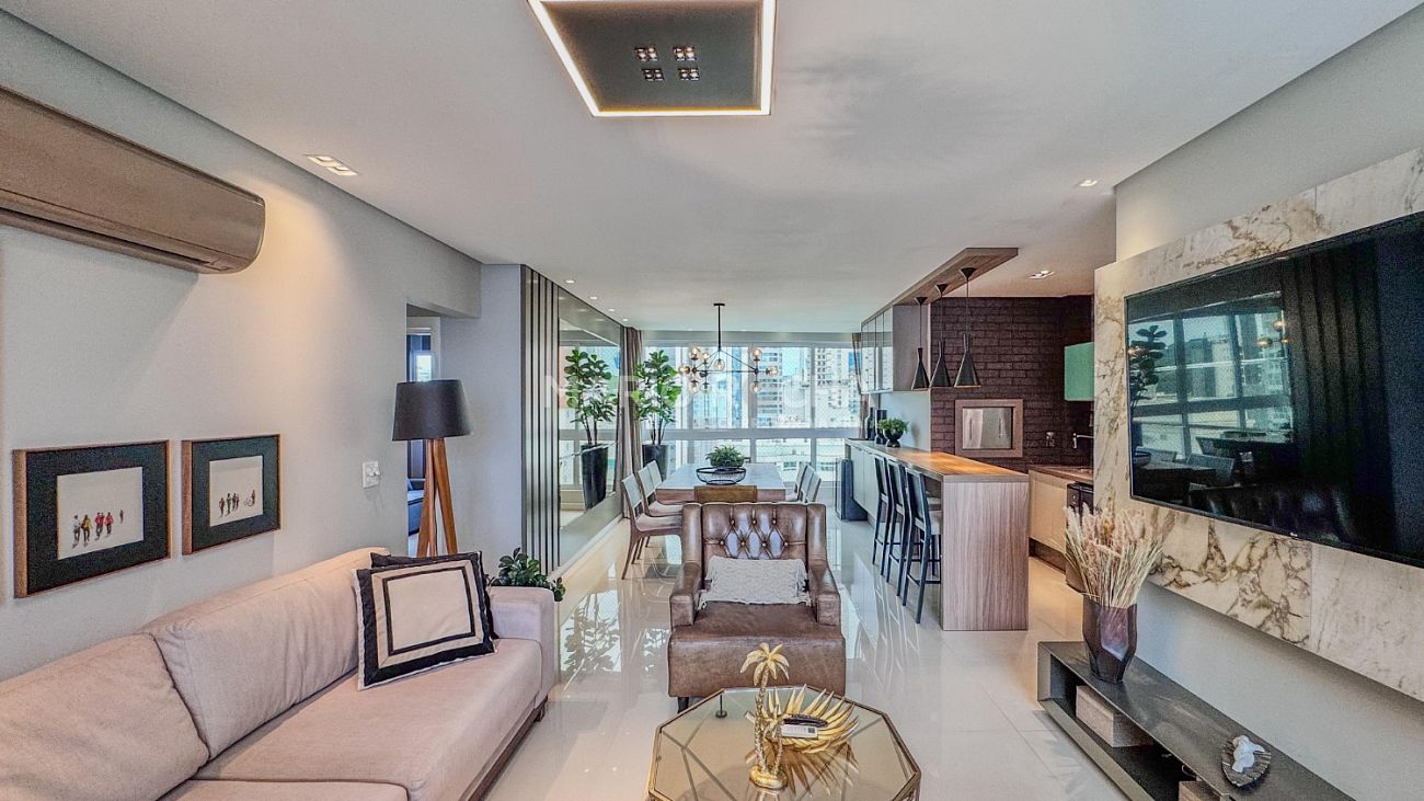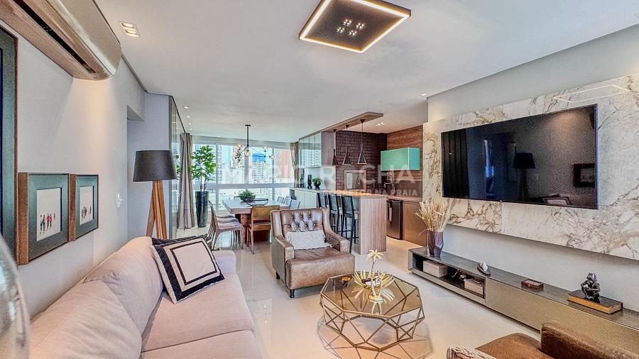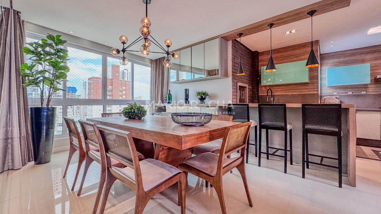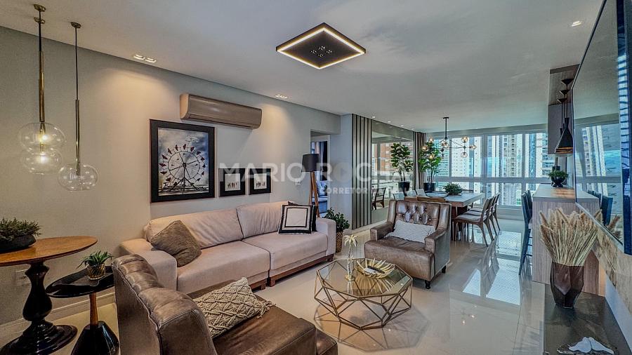 Conforto, sofisticação e localização estratégica definem este apartamento mobiliado e decorado no Edifício Peniche, em Balneário Camboriú.