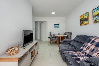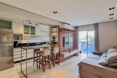 O apartamento está super bem mobiliado, pronto para uso imediato — é entrar e aproveitar. A mobília foi pensada para otimizar os espaços e entregar conforto mesmo em uma planta compacta.